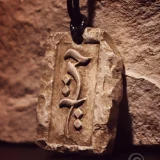 “A masterpiece of intricate craftsmanship. This pendant showcases the delicate artistry of Jerusalem’s traditional stone carving. The phrase ‘Deserve life,’ taken from Mahmoud Darwish’s poetry, is etched into the stone, with exquisite detail, creating a piece, that is both visually stunning, and deeply meaningful.”