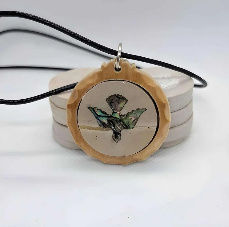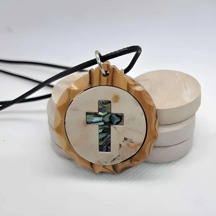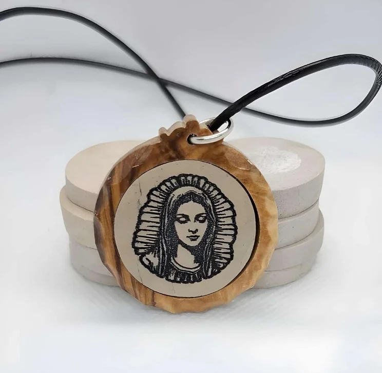 • Holy Land Stone Peace Dove Pendant with olive wood frame