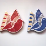 hand made coin ceramic ornament, the artist use the safe glazing and colors with all her products.
