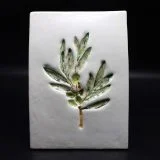 Showcase the beauty and heritage of the Holy Land with this handmade Display Plate Olive Branch Stamp, crafted from locally sourced Palestinian clay. Each plate is carefully stamped with a real olive branch during the olive season, creating a unique impression that highlights both artistry and tradition.