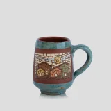 A one-of-a-kind hand made mug, meticulously handcrafted, and adorned with a traditional Palestinian motif. Perfect for adding a unique touch to your home.