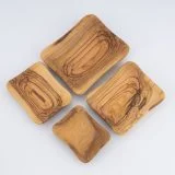 Elevate your table with this Handcrafted Square Olive Wood Plate Set, beautifully carved from authentic olive wood sourced in Bethlehem. Each plate showcases the unique grain and warm tones of olive wood, bringing natural elegance to any setting.
