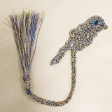 Handmade Crochet book mark. A colorful metallic threads were used to shape the Palestinian Sunbird book mark.