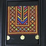 This embroidery wall art frame beautifully combines traditional Palestinian embroidery, mosaic stones, and a wooden frame.