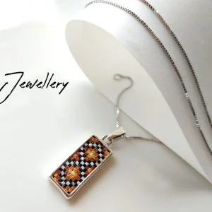 An exquisite mosaic pendant, handmade with a natural stones from Palestine.