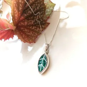 Handmade mosaic Olive leaf pendant.