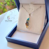 This exquisite pendant, expresses the shape of Palestine, while the stones in their different colors expresses the Old City of Jerusalem and shows the Dome of the Rock Mosque.