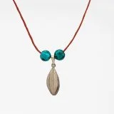 handmade silver olive leaf necklace with big glass bead