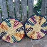 A decorative traditional Palestinian straw plate, handcrafted from wheat straw.