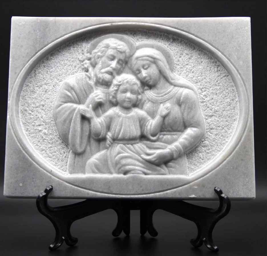 Celebrate the sacred story of the Nativity with this Big Holy Family Stone, meticulously handcrafted from authentic Palestinian stone by a skilled Bethlehemite artisan. This larger piece showcases the Holy Family in detailed carving, designed to stand beautifully as a centerpiece or decorative accent.