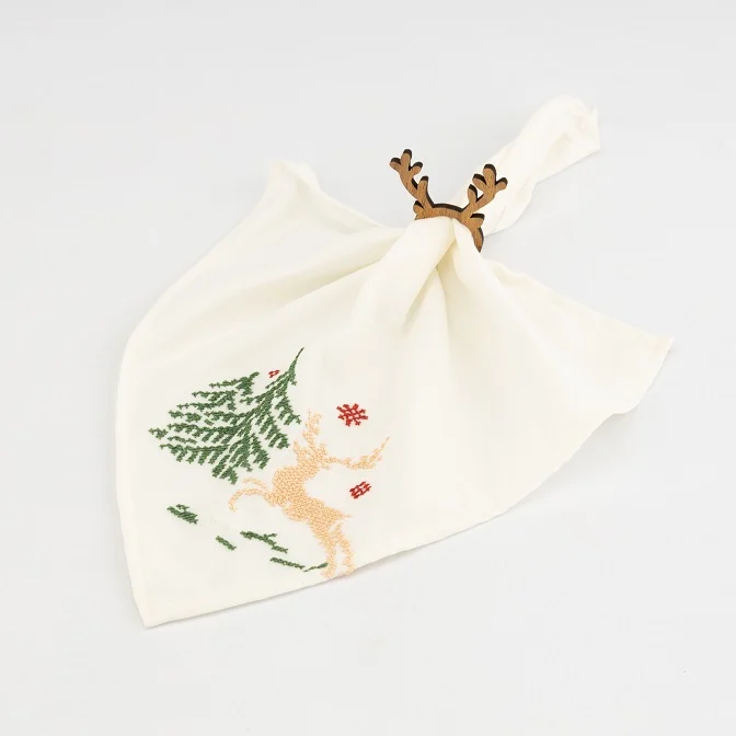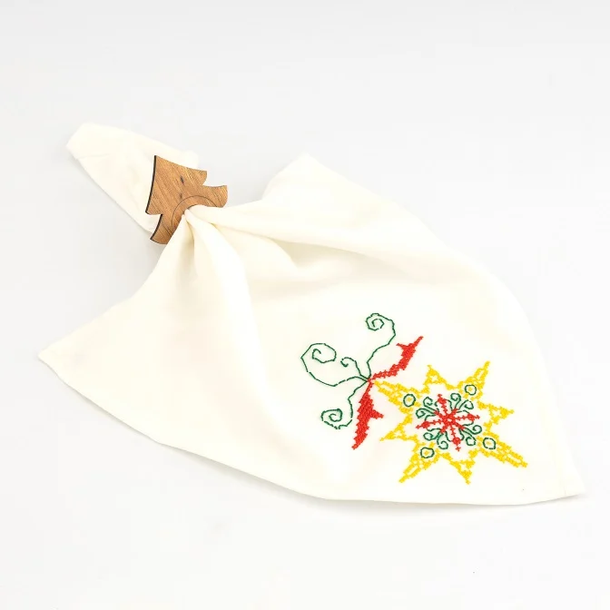 Add a touch of heritage and festive elegance to your holiday table with this Christmas Embroidery Table Napkin with Wooden Ring.