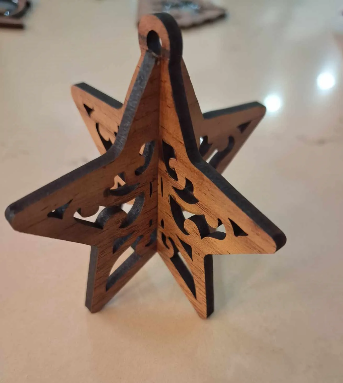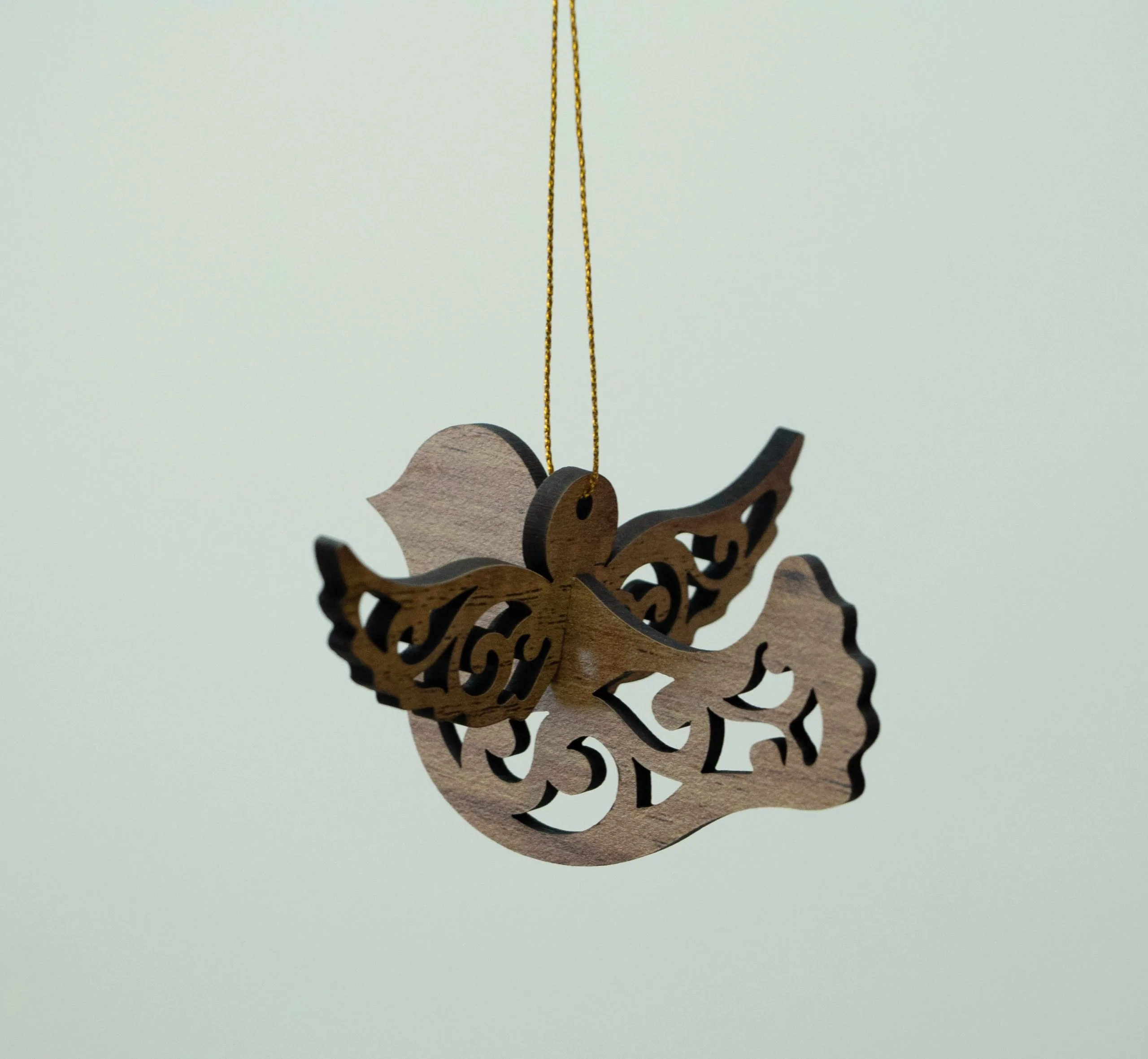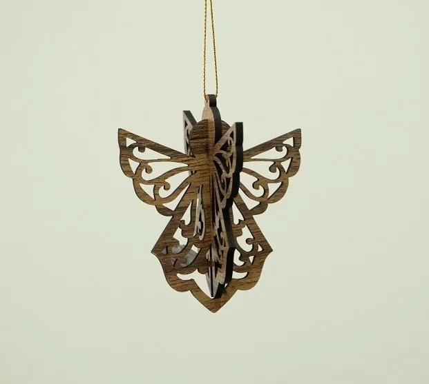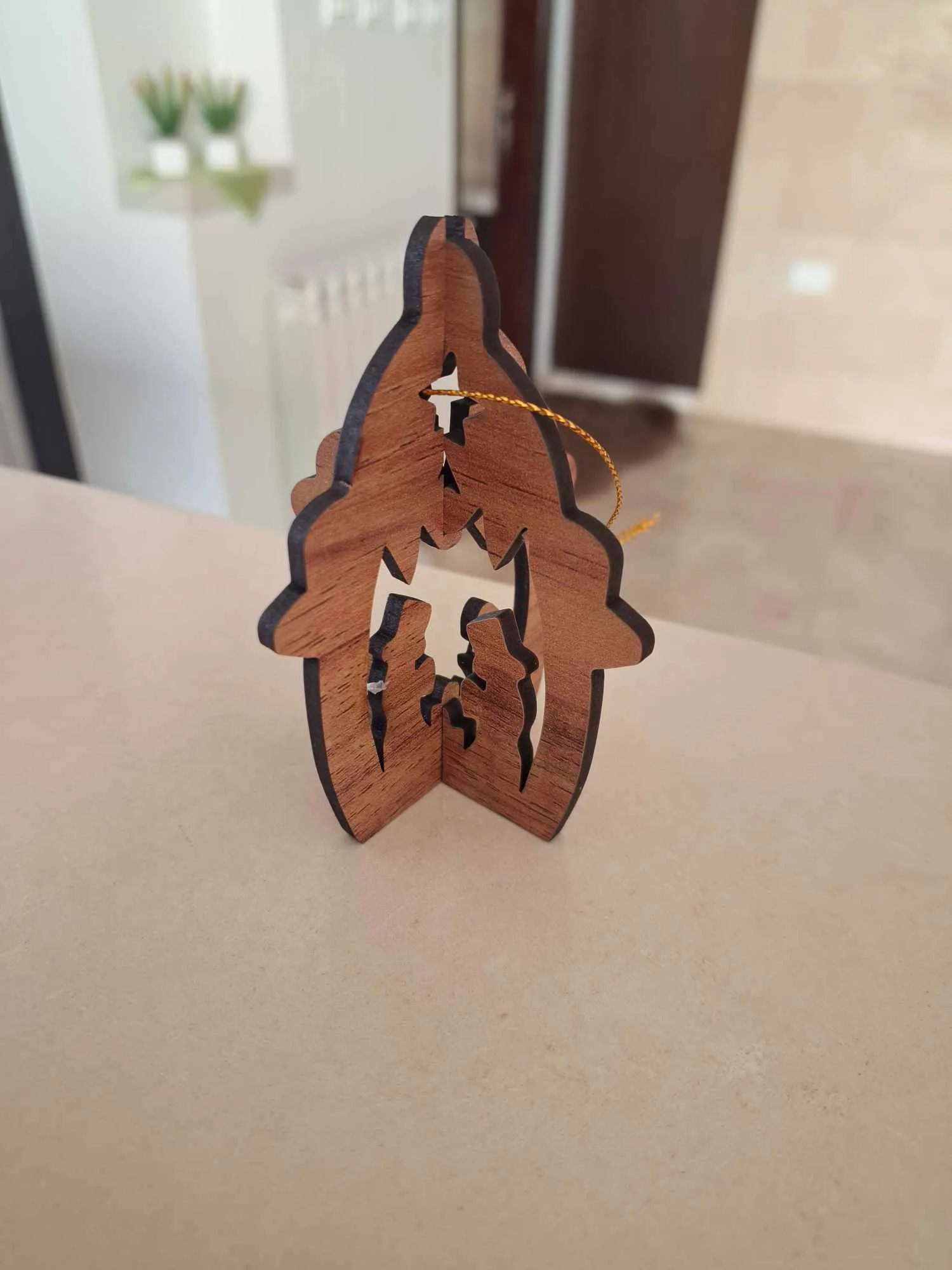 One-of-a-kind hand-made wooden Christmas tree ornament.