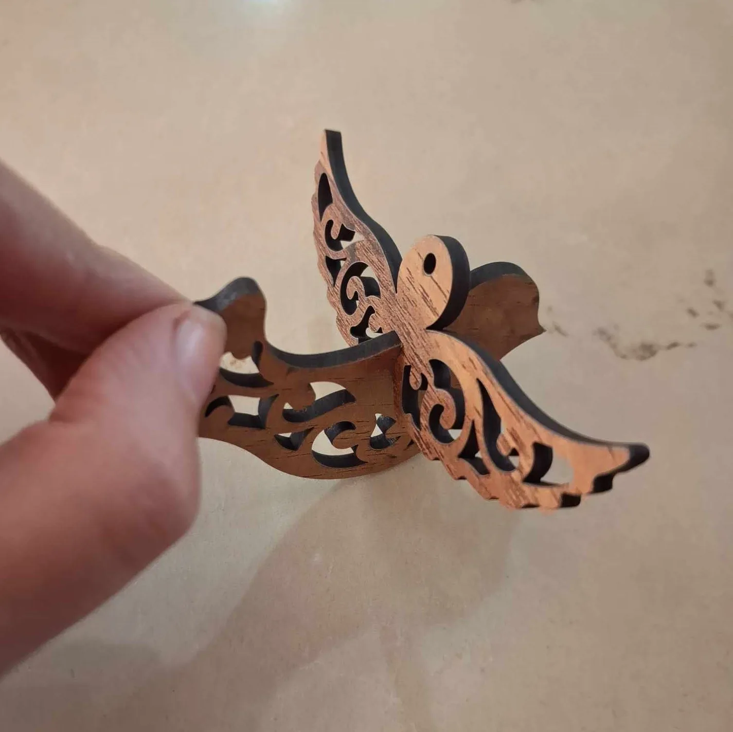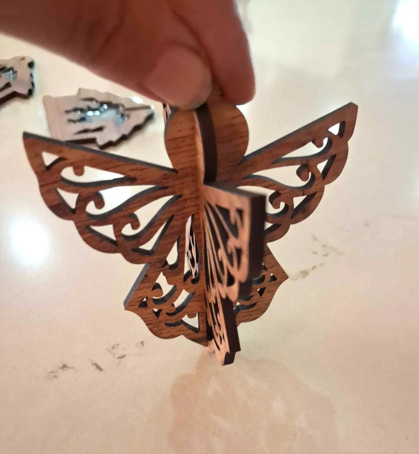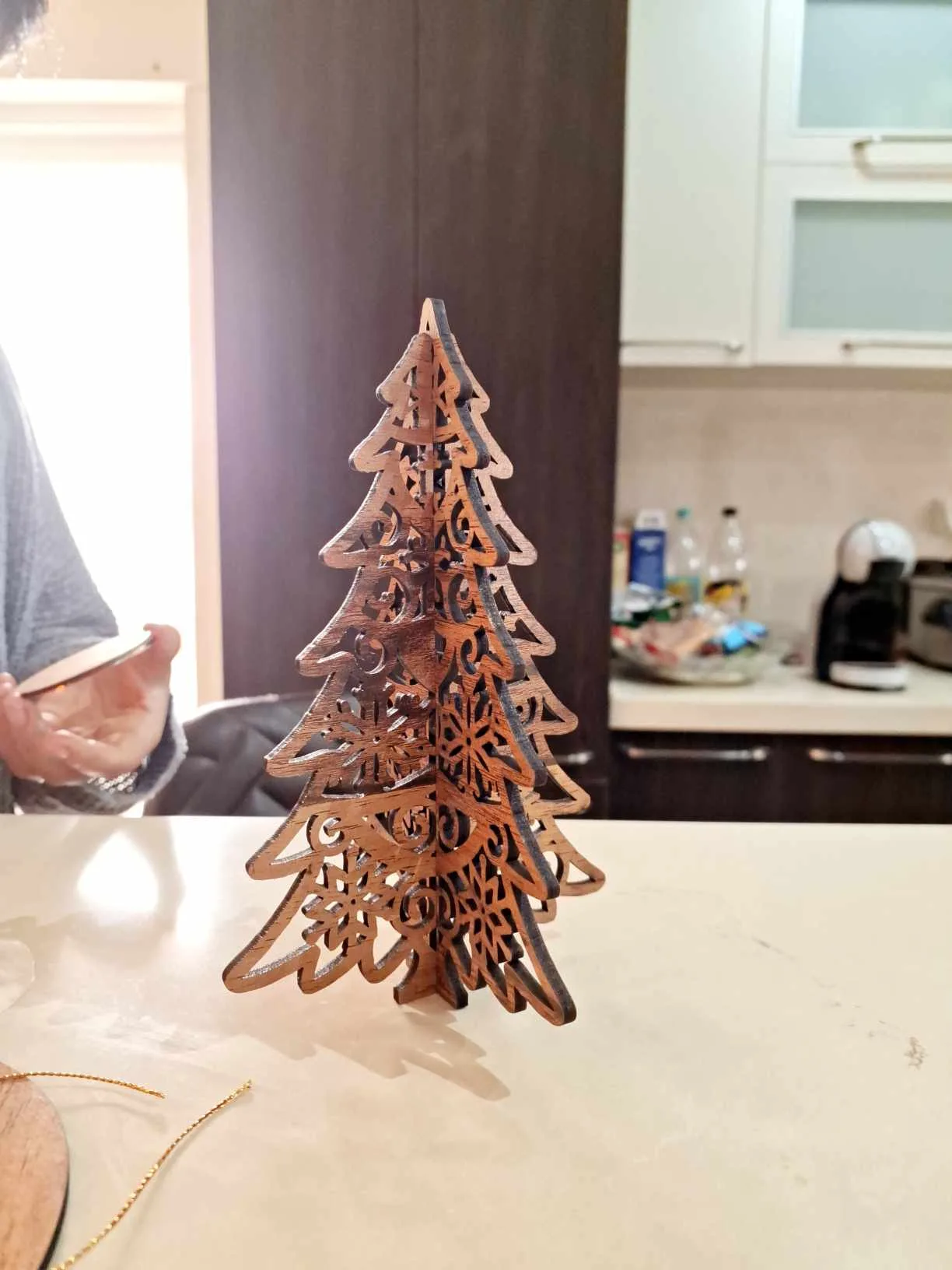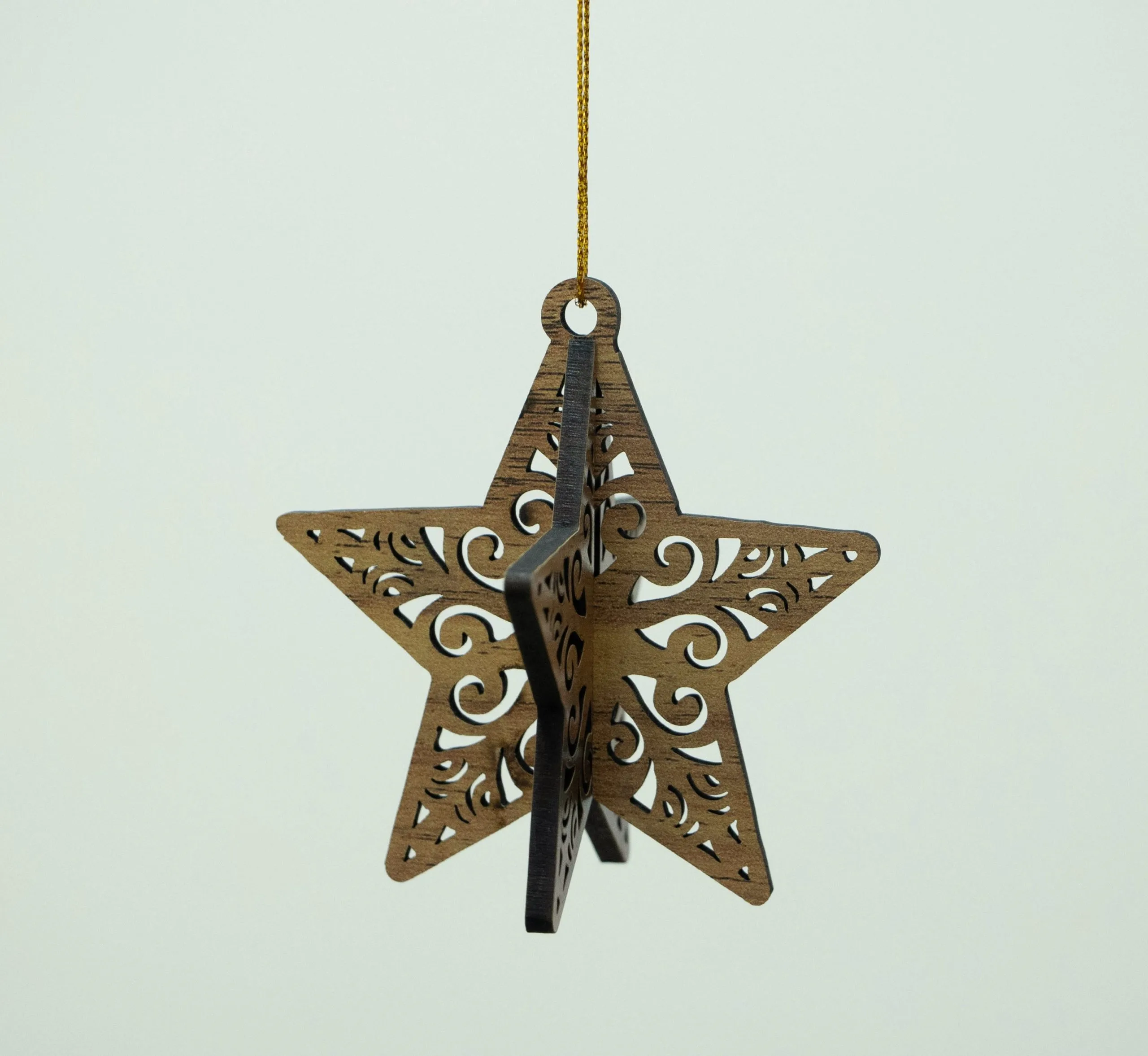 One-of-a-kind hand-made wooden Christmas tree ornament.