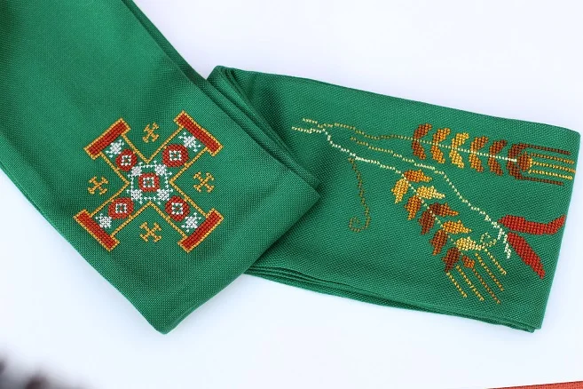 Honor growth, renewal, and the sacred gift of the Eucharist with this Green Embroidered Stole with Wheat. Handcrafted by skilled Palestinian artisans, this elegant liturgical stole features beautifully stitched golden wheat, symbolizing the Body of Christ, spiritual nourishment, abundance, and the blessing of the harvest.