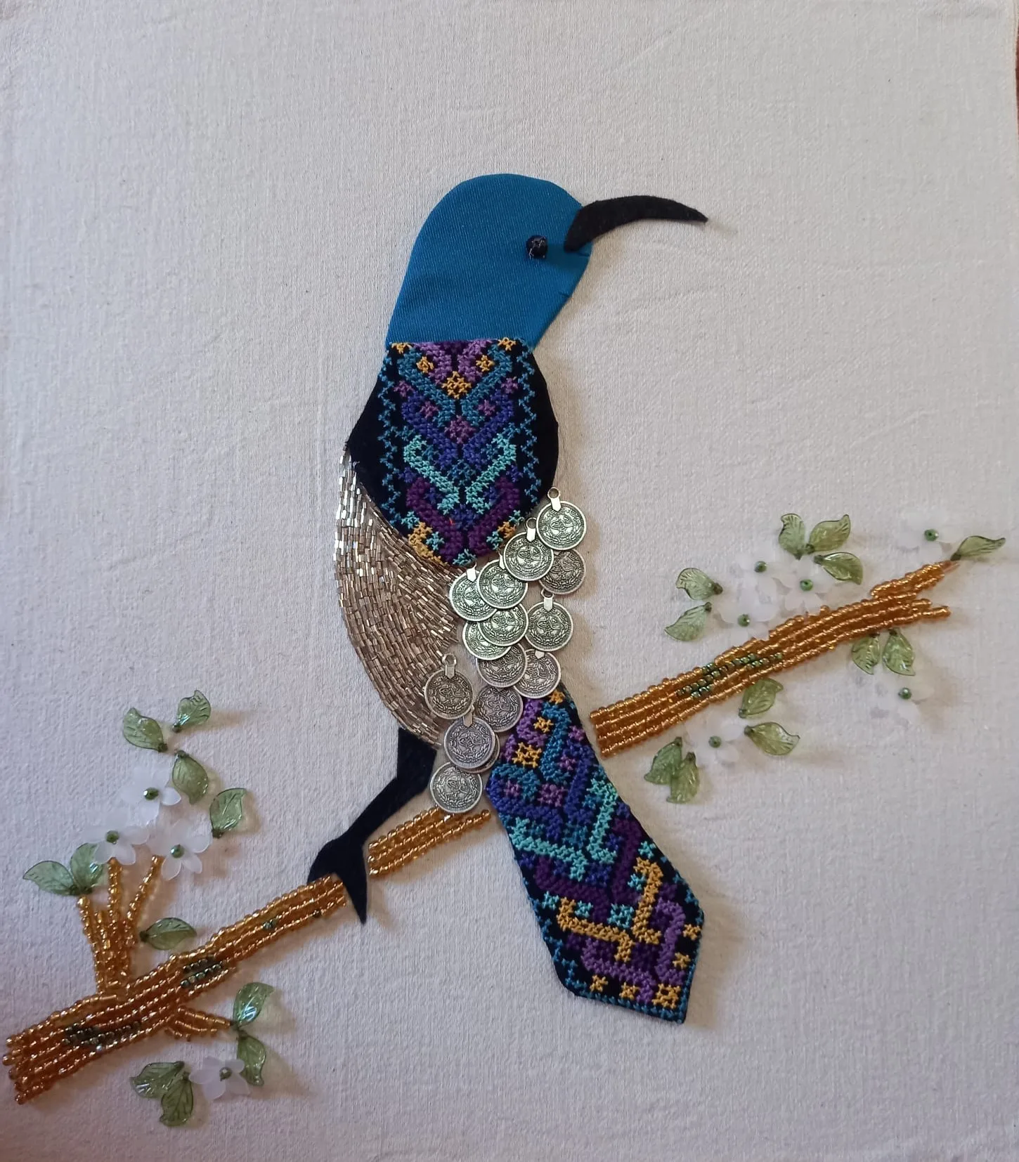 #PalestinianSunbird #WallArt #Handcrafted #Palestine #Sustainability #Freedome #MansuriCloth #Eco-friendly #Story