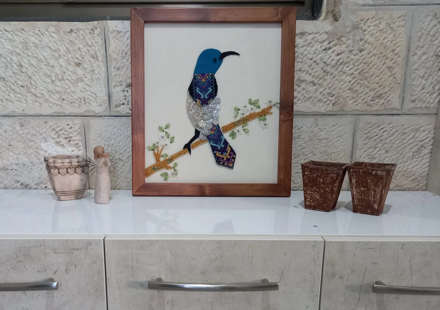 Add a meaningful touch to your home with our handcrafted Palestinian Sunbird wall art.