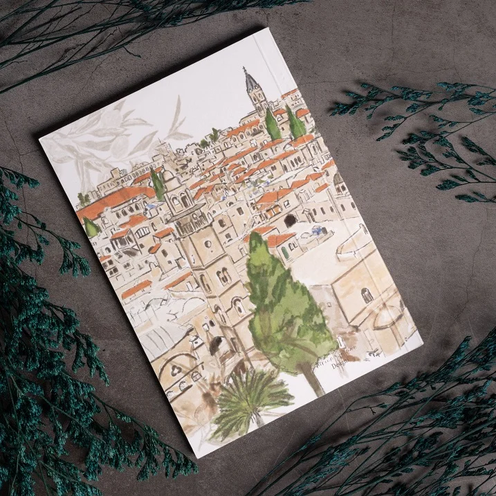 This notebook original drawing is hand painted, reveal an artistic views of Jerusalem’s iconic cityscape.