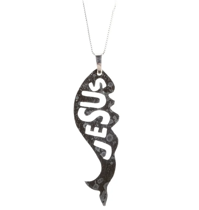 The pendant features the iconic Christian fish symbol (Ichthys), with the word “Jesus” elegantly carved inside the fish, making it a distinctive and meaningful expression of devotion.