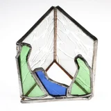 This handcrafted lantern features a unique recycled glass shade, adding a touch of modern artistry to a classic design.