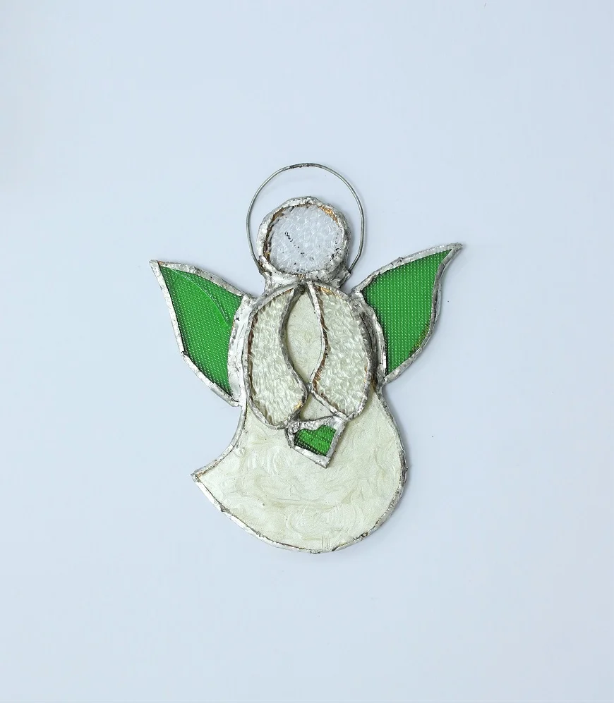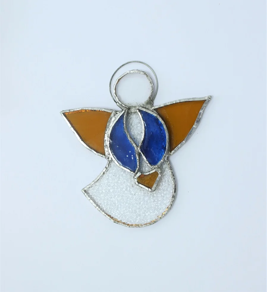 Handcrafted by skilled artisans, each Loving Stained Glass Angel is a one-of-a-kind creation, featuring vibrant glass colors, clear wings, and the rich textures of traditional stained glass. The angel holds a delicate heart at its center, symbolizing love and warmth, and is expertly copper-foiled and lead/tin soldered for lasting beauty.