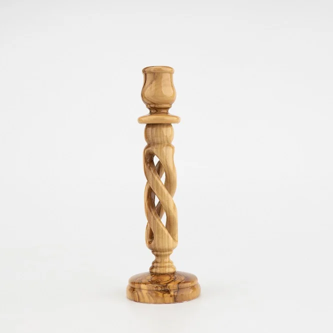 With its graceful spiral design and natural olive wood grain, this candlestick adds an artistic and spiritual touch to any décor. A timeless reminder of peace, faith, and the beauty of the Holy Land.