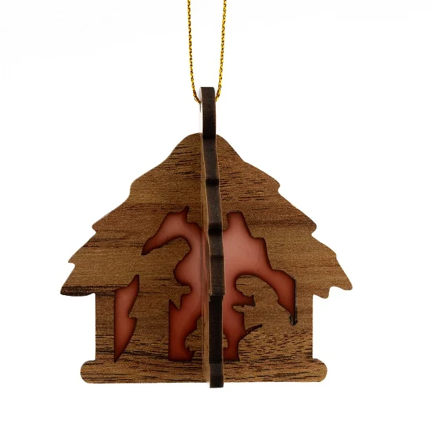 Celebrate the spirit of Christmas with this handcrafted Wooden Nativity Ornament, made from wood and resin sourced from the Holy Land of Bethlehem.