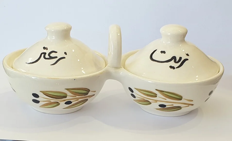 A special Olive Plate Zeit & Zaatar, perfect for serving olive oil and thyme (zeit & zaatar).