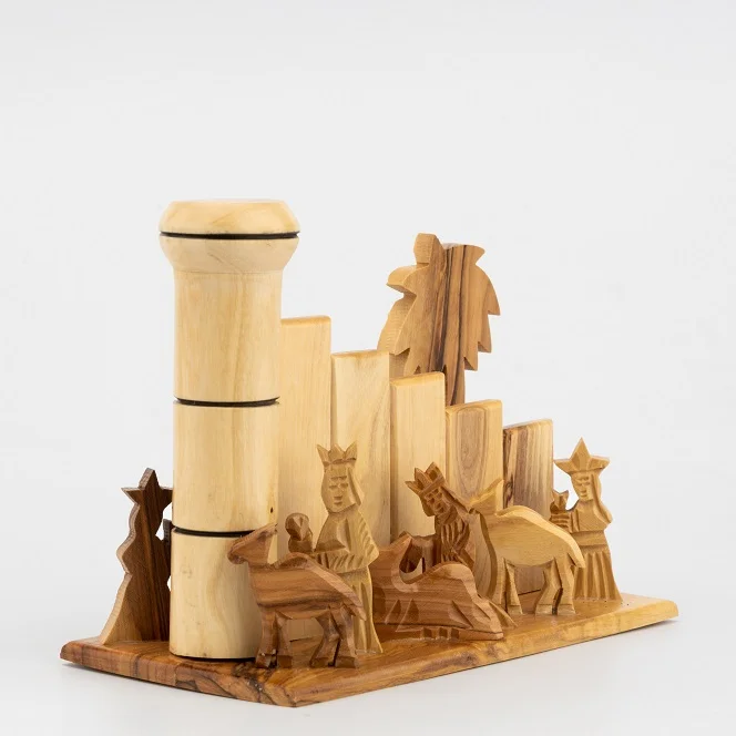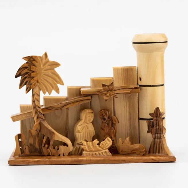 handmade in the holy land of Bethlehem, depicting the Magi and shepherds separated by the wall.