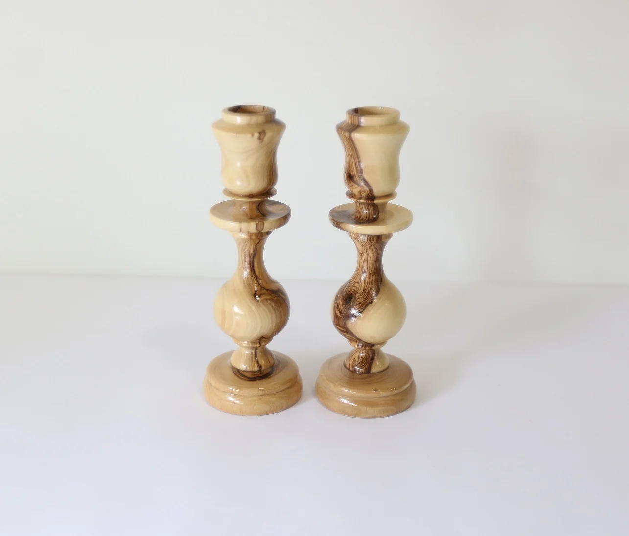 Palestinian Olive Wood Candlestick Set