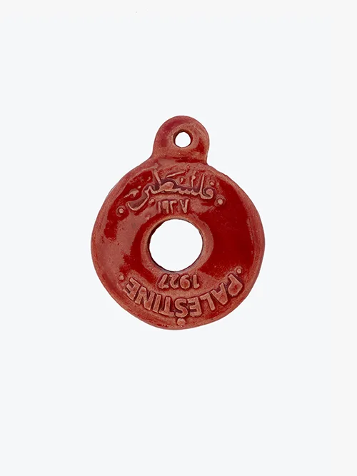 hand made coin ceramic ornament, the artist use the safe glazing and colors with all her products.
