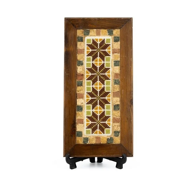 This Embroidery Wall Art Frame beautifully combines traditional Palestinian embroidery, mosaic stones, and a handcrafted wooden frame.