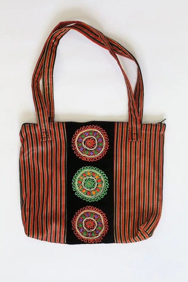 This exquisite handbag showcases the traditional Palestinian Tahreereh embroidery technique. Handmade in Bethlehem, it’s inspired by the iconic Bethlehem dress.