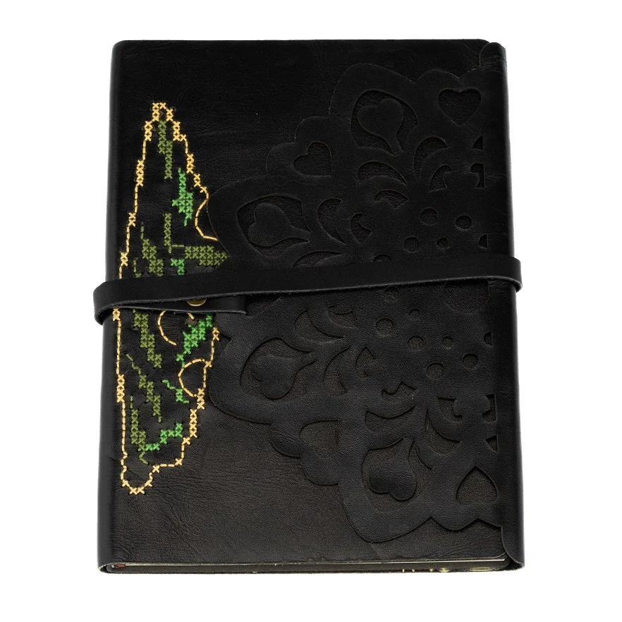 Celebrate the rich heritage of Palestine with this handmade Palestinian embroidery leather notebook. Crafted by skilled artisans, it features intricate Tatreez embroidery beautifully integrated into high quality leather, creating a luxurious and culturally meaningful notebook.