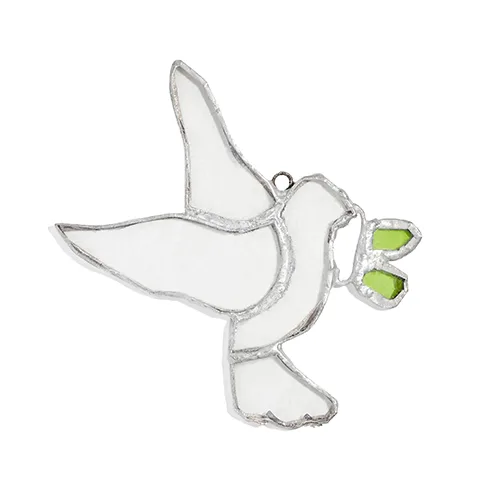 Embrace eco-chic style with this charming handcrafted Peace Dove holds an Olive Branch.