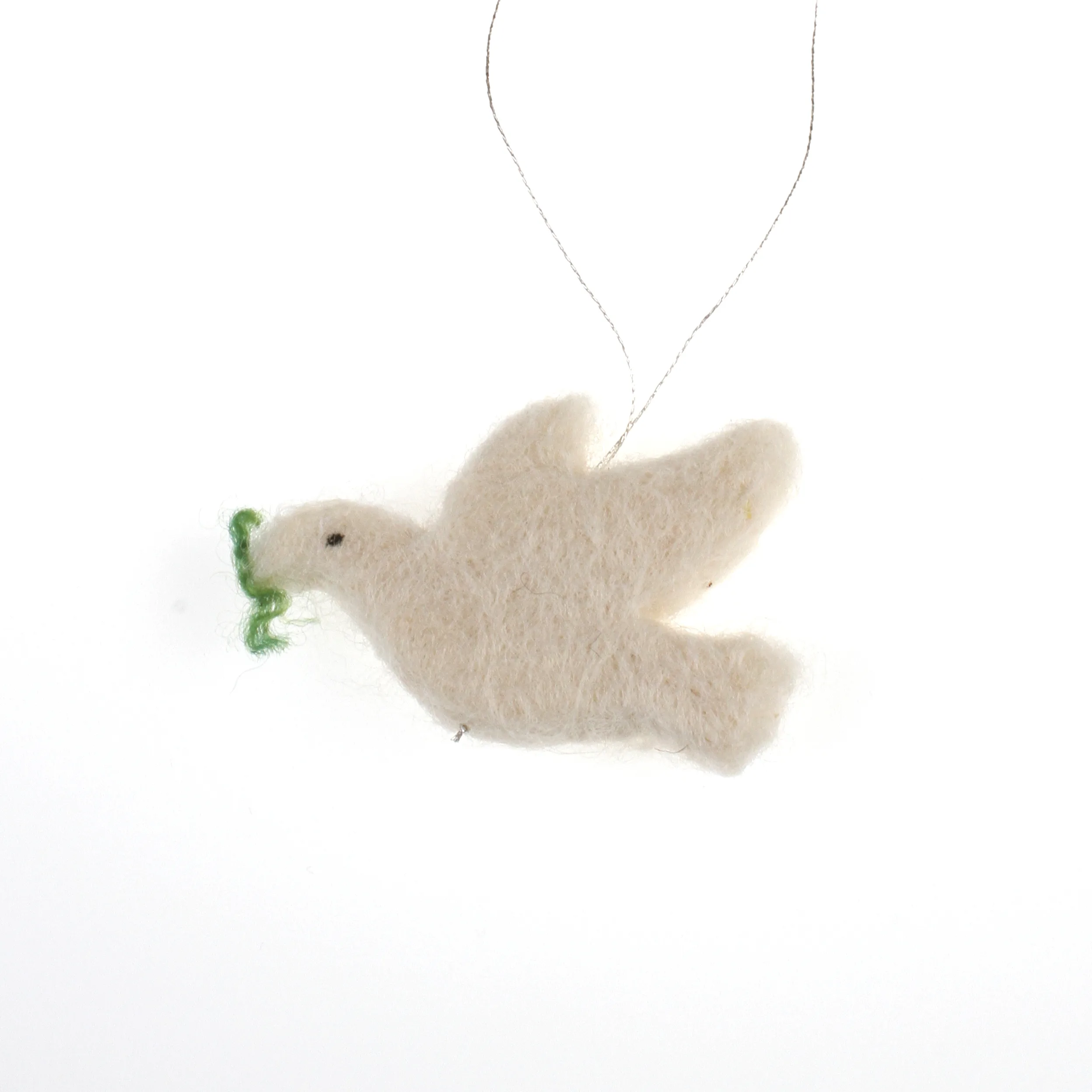 Symbolize peace, with this beautiful, handmade wool felt dove ornament.