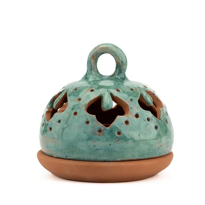 Illuminate your space with the warm glow of our Pierced Candle Holder, a beautifully handcrafted ceramic piece made by skilled Palestinian artisans. Each holder is delicately pierced by hand, allowing light to dance through its patterned openings and cast mesmerizing shadows on your walls.
