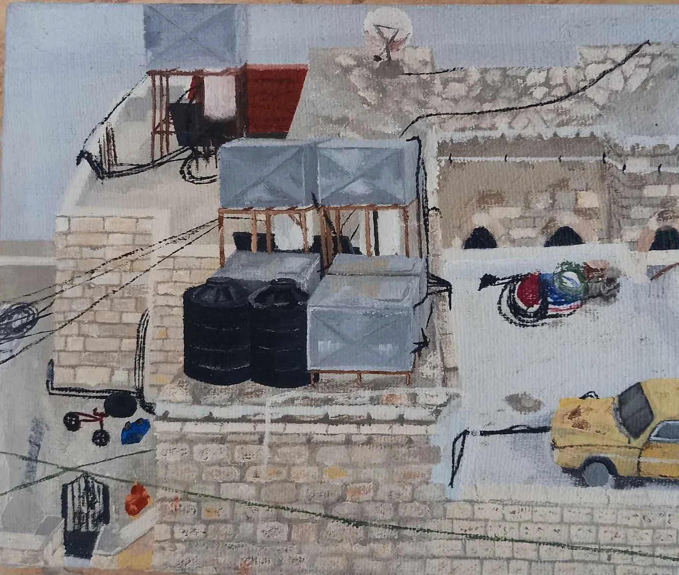 Rooftop-Bethlehem painting, where Bethlehem city view, and houses, meet in oil colors on canvas.