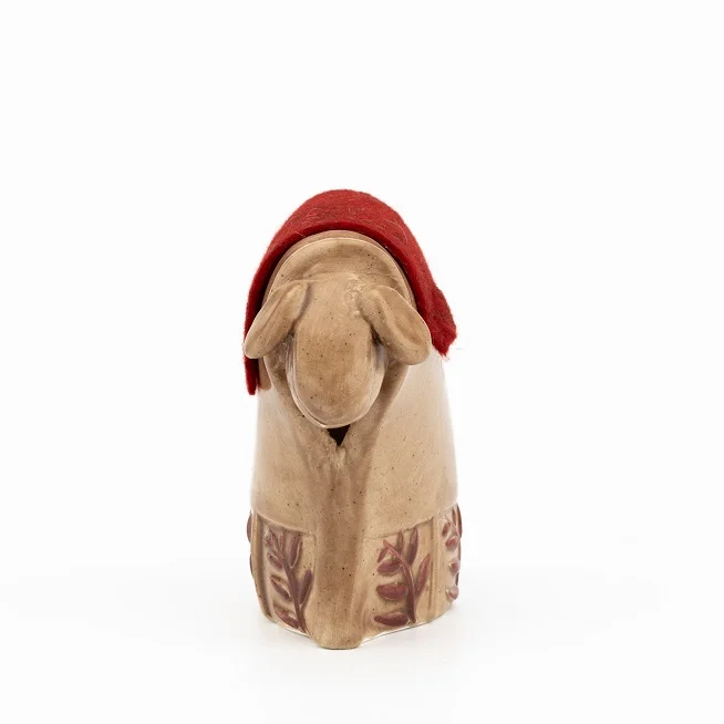 Handcrafted from high-quality ceramic, this decorative piece combines smooth ceramic craftsmanship, with the warmth of natural wool, making it a perfect accent for shelves, tables, or nursery décor.