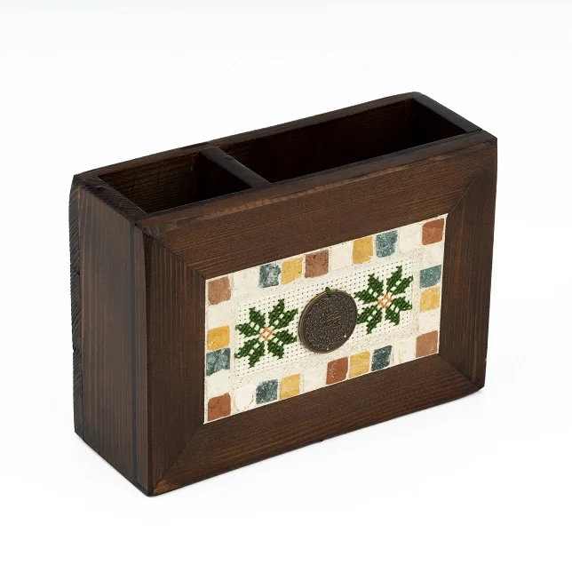 Add a touch of heritage to your workspace with this handcrafted Small Pencil Box Stand, made from natural wood, mosaic stone, and traditional Palestinian embroidery.