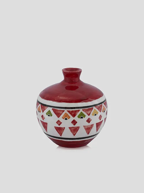 A one-of-a-kind hand made round jar, meticulously handcrafted, and adorned with a traditional Palestinian motif. Perfect for adding a unique touch to your home.