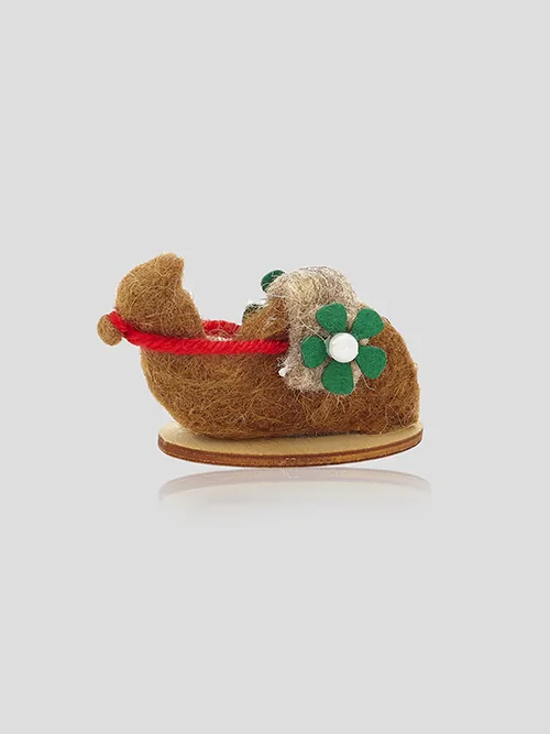This charming handmade wool felt camel, crafted with care by special needs artisans.