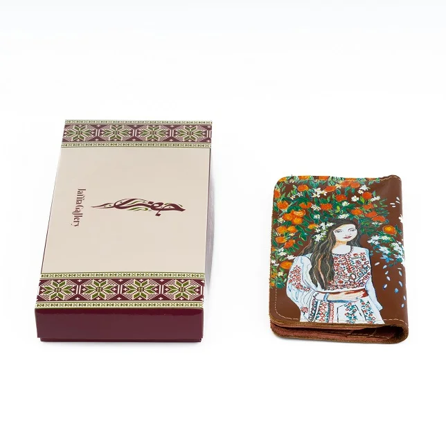 Experience the beauty of this limited-edition small leather purse, handmade in Palestine by artist Nisreen Azza.
