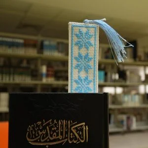 Each bookmark, features deferent design, including Bethlehem stars, the traditional dress, and the Palestinian map with a quote from Mahmoud Darwish’s poem: “We have on this land all of that which makes life worth living.”