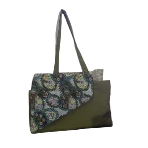 This eco-friendly upcycled artist bag, is crafted from repurposed fabrics, sourced from Bale and second-hand markets, promoting sustainability and reducing waste.